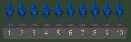 Vorgehensweisen: Die "einfachste" Möglichkeit ist hierbei ein simples Trial&Error-Verfahren. Das kann unter Umständen aber sehr lange dauern und ist daher nicht zu empfehlen. Wenn man mit etwas mehr System rangeht, kann man die Krondalls wesentlich schneller lösen. Dazu schreibt man sich die Reihenfolge der Kristalle auf. Man fängt dabei bei Kristall 1 an und geht aufsteigend vorwärts. Sobald ein Kristall andere hoch drückt, notiert man sich diesen Kristall links neben den Kristall, der in der notierten Reihenfolge am weitesten links steht und hoch gedrückt worden ist. Ein Beispiel: